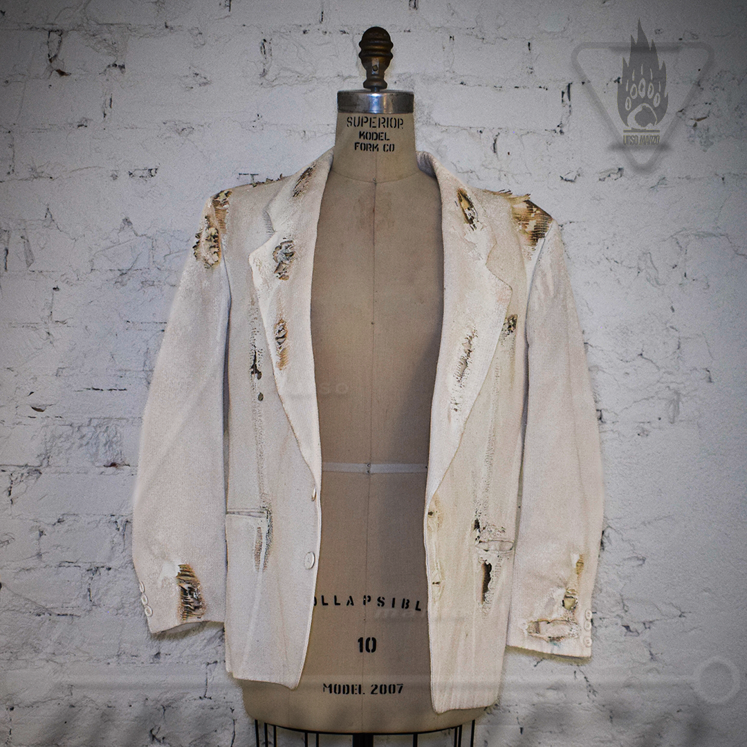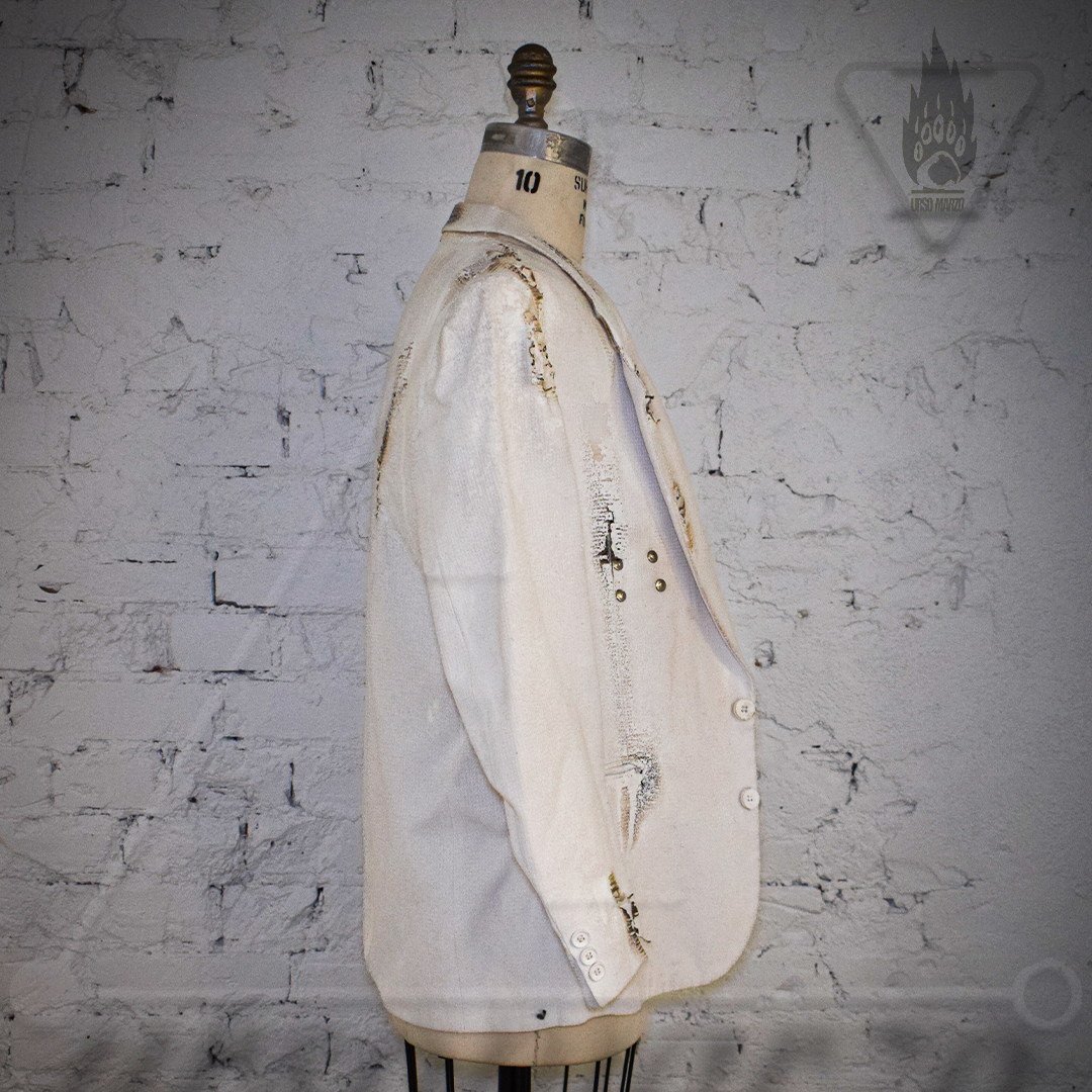 ignited and deconstructed white cotton blazer