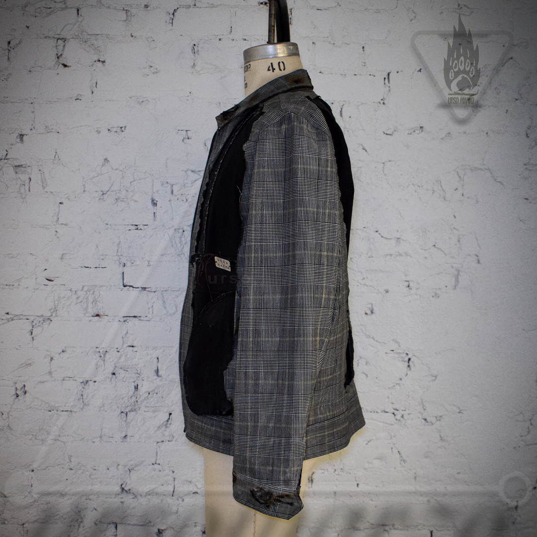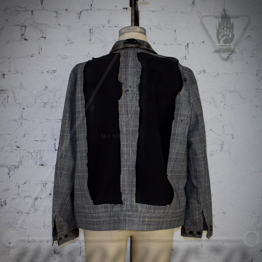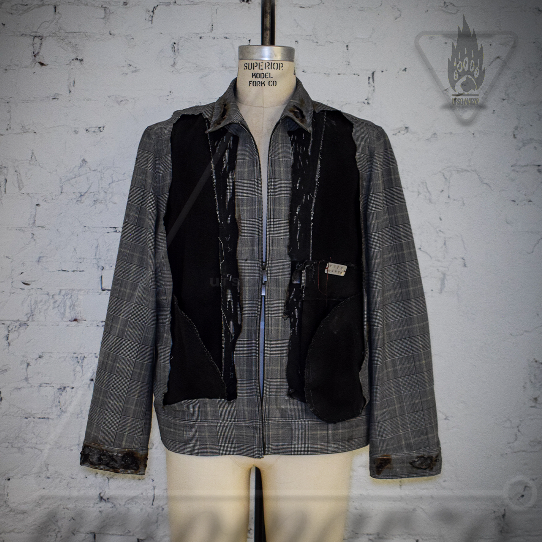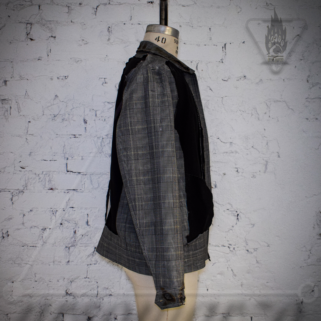 ignited and deconstructed grey tartan dual-way zip chore jacket